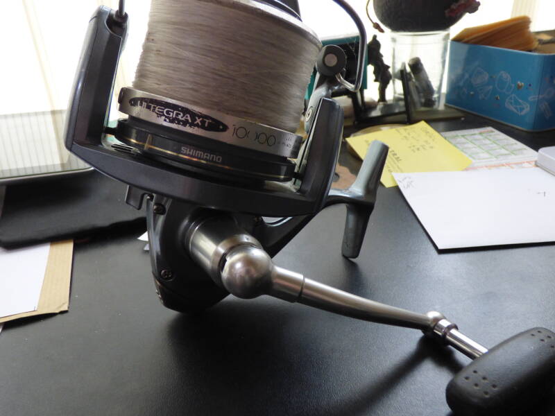 notez état d'usure peinture au pied, sur un puits de vis carter, et, un éclat sur l'un des enjoliveur de bras de rotor; pas de jeu, pas de trace d'oxydation; frein avant bobine textile tressé nouvelle génération en deux étages ( voir photo )( ce qui sous entend que son ancien propriétaire pêchait trés fin et freinait peu )Vous pouvez mettre en place :carbon tex ou graphite pour plus de puissance (car ce moulinet peut tenir un combat avec un maigre de 40 Kg)